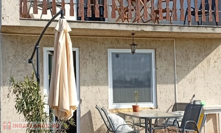Alsó szinten: terasz található, mely a parkosított udvarra néz, nappali – étkező - konyha, tágas folyosó , fürdő-WC,és a pince is az ingatlanból kényelmesen bejárható