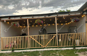 Az épület folytatásában, az udvarról megközelíthetően található két további tároló, valamint egy nyitott hangár, amely sokféle célra alkalmas lehet (parkolás, fedett tárolás, hobbihelyiség).